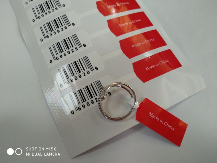| 标签特性 | 珠宝标签材质安全环保,不易脱落,印刷清晰、颜色鲜艳不褪色,表面光滑, 厚薄均匀,光泽度柔韧度好 |