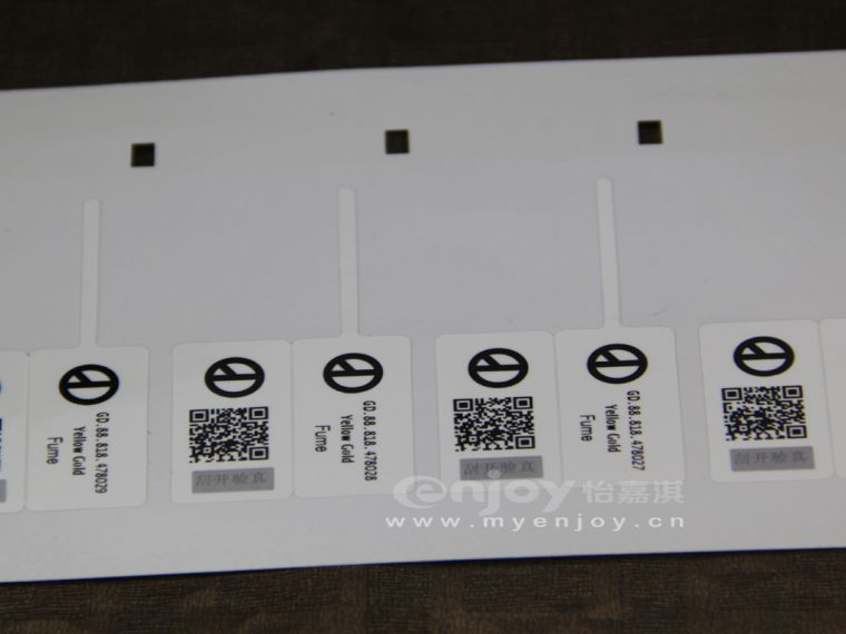 珠宝标签特性:珠宝标签材质安全环保,不易脱落,印刷清晰、颜色鲜艳不褪色,表面光滑,厚薄均匀,光泽度柔韧度好;